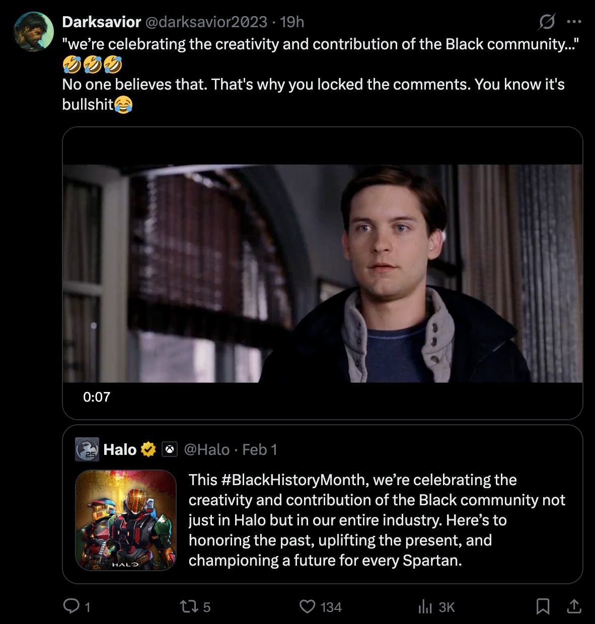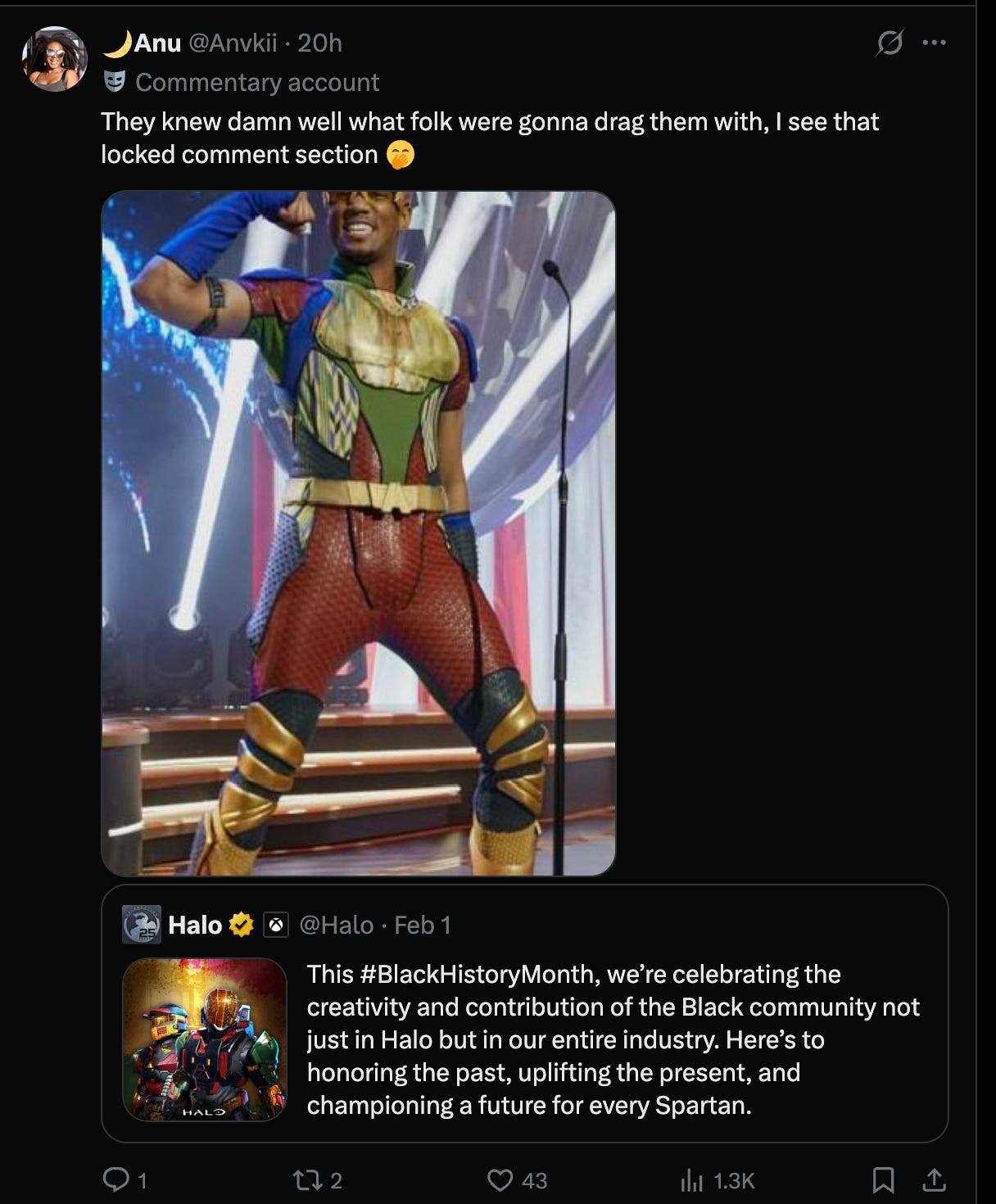 As usual, Halo does not get a good reception on X with this nor anywhere else on the internet as gamers rightly mock the postings. This year, they’re back with Black History Month again, preemptively turning off comments so they won’t get mocked.
