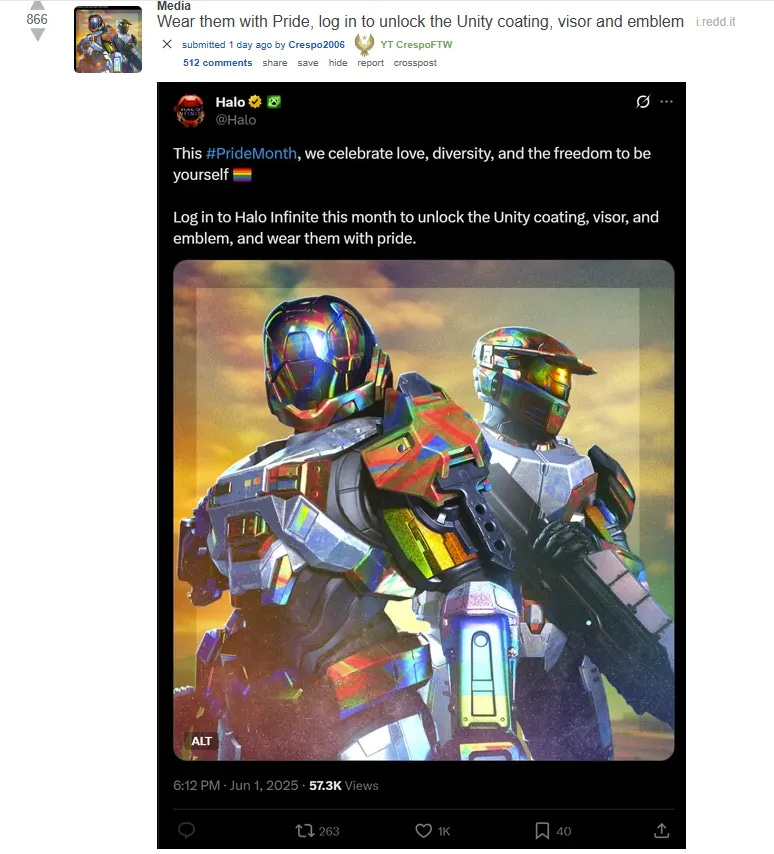 Instead of being known for their great games in recent years, Halo is mostly known for their DEI postings of different months, such as last year’s “Pride Month” posting.