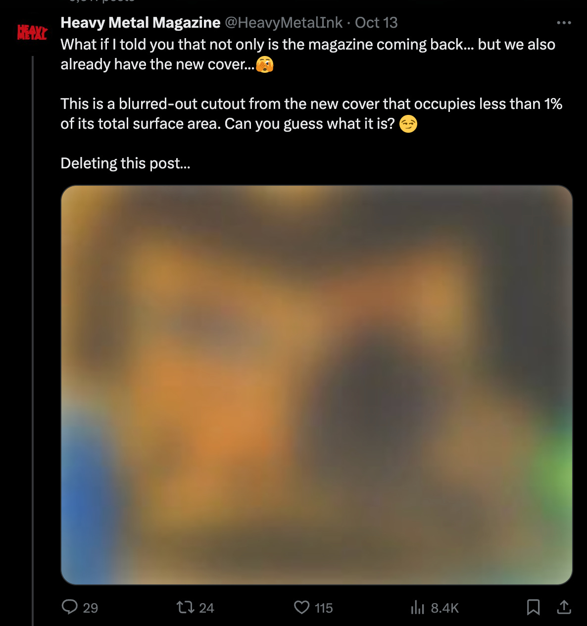 On October 13th, the official X account posted a teaser about the magazine's return with a blurred image.