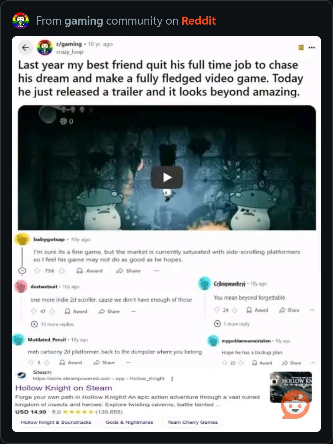 Reddit's gaming community had been dismissive of Silksong's potential, with many users claiming the platformer market was oversaturated. Those predictions proved spectacularly wrong as players flocked to Team Cherry's latest creation in unprecedented numbers.