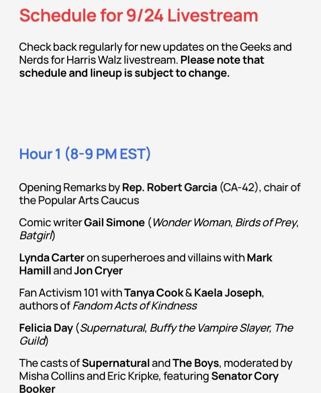 Geeks & Nerds For Harris is unlikely to help with a vote, so why are has-been Hollywood actors doing the event?