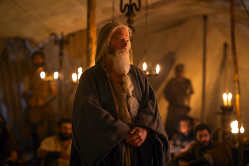 This then allows the first episode to explore Saul and his son Jonathan’s various military exploits that are in Scripture including their battles with the Ammonites and the Philistines. It also gives room to show more of Saul’s downfall and how God did provide Saul opportunities to reconcile himself to Him before he decided to make himself a god after the battle with the Amalekites. In fact, an entire second episode could have been devoted to Samuel’s instruction to Saul regarding the Amalekites, the battle with the Amalekites, and then Samuel’s rebuke of Saul, which might be the best scene in the entire show at the end of the first episode.