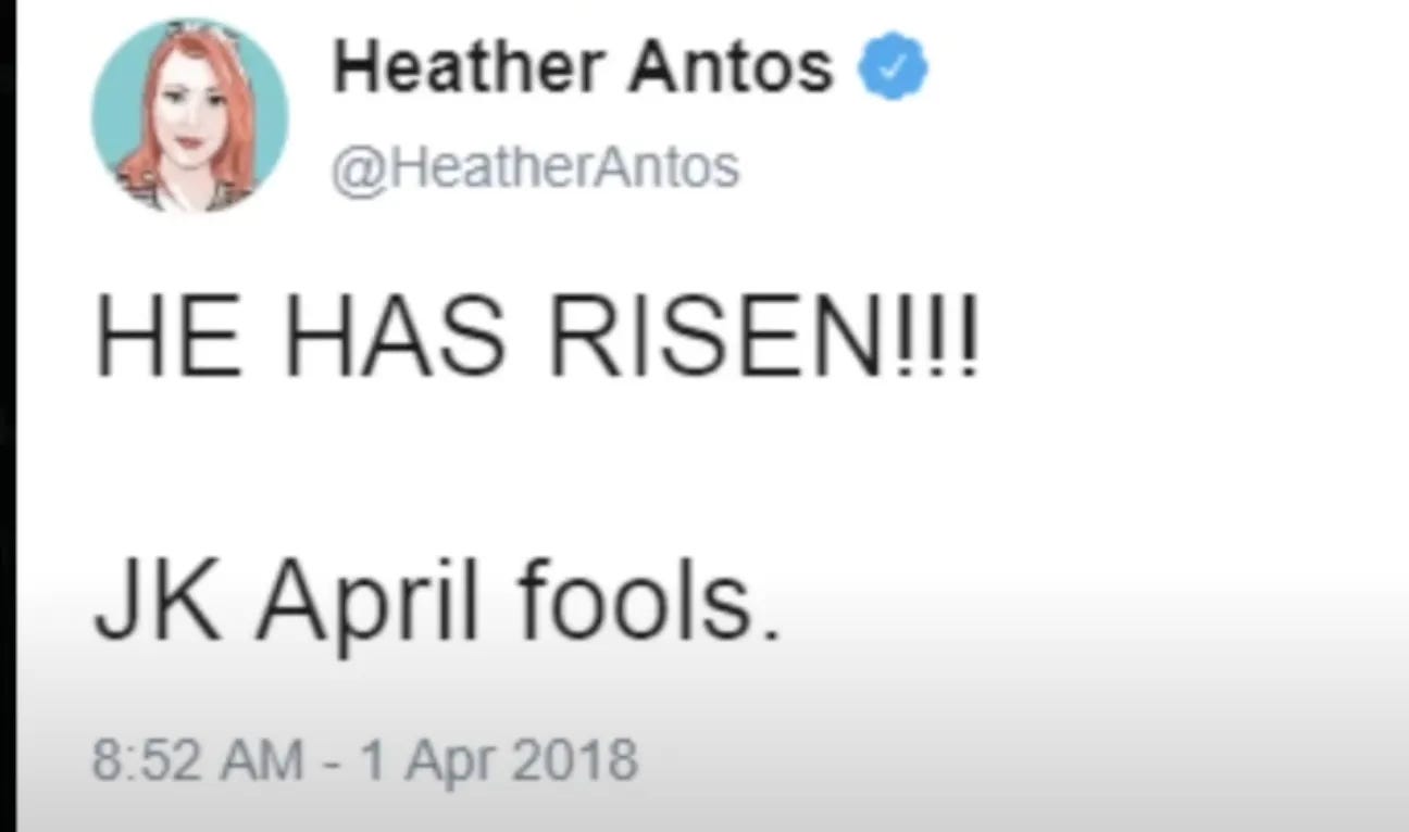 Heather Antos has mired herself in controversies multiple times in the past by attacking Christians and showing strange proclivities that have pointed toward her devil worship. Her first instance of this was a post in 2018 where she mocked the resurrection of Christ in a tweet on Easter Sunday.