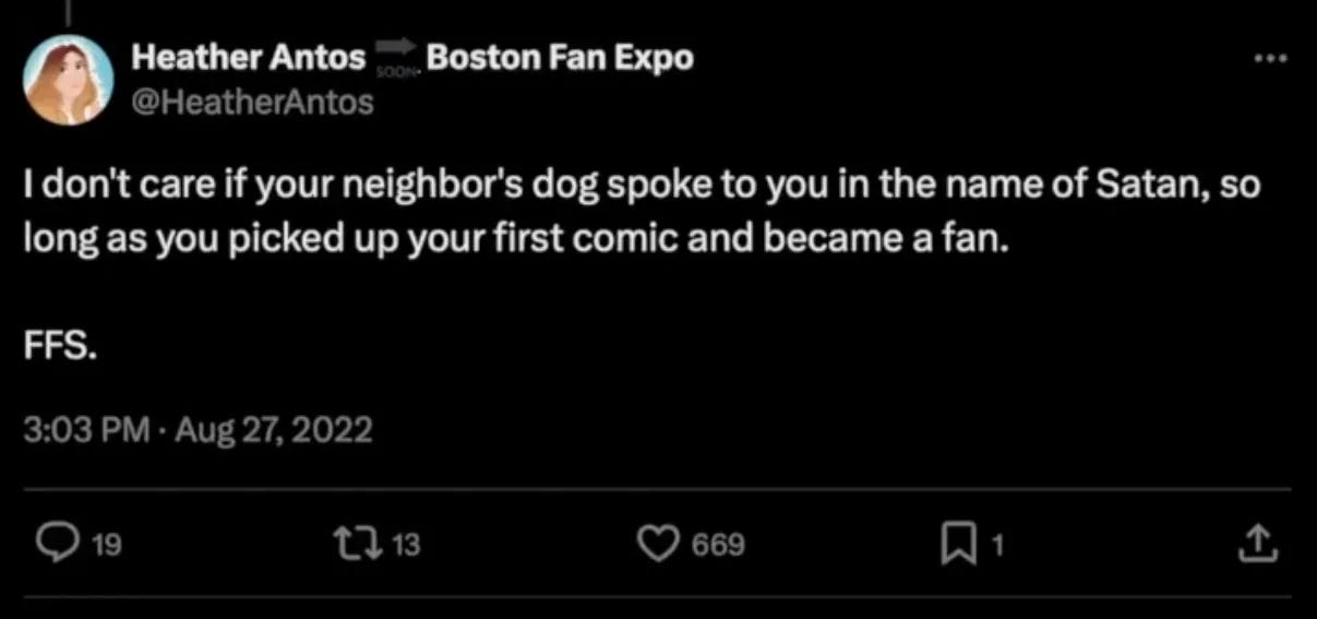 What do you think of Heather Antos from IDW Publishing broadcasting her Satanism? Leave a comment and let us know.