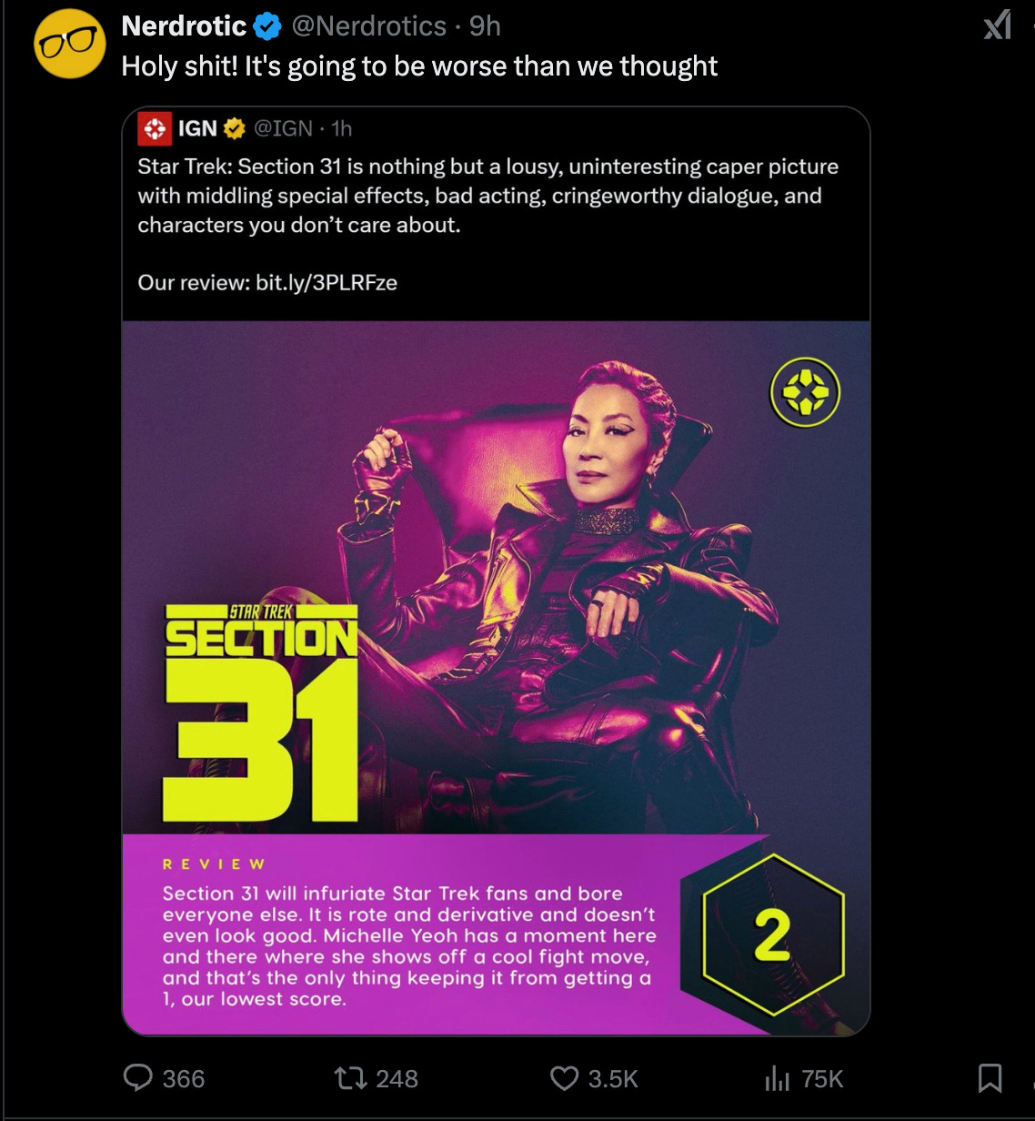 IGN Savages Section 31 In Review As Nerdrotic Reminds Fans The Official Star Trek X Account Blocked Him