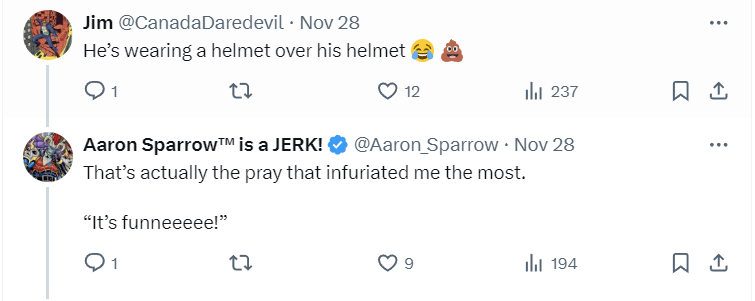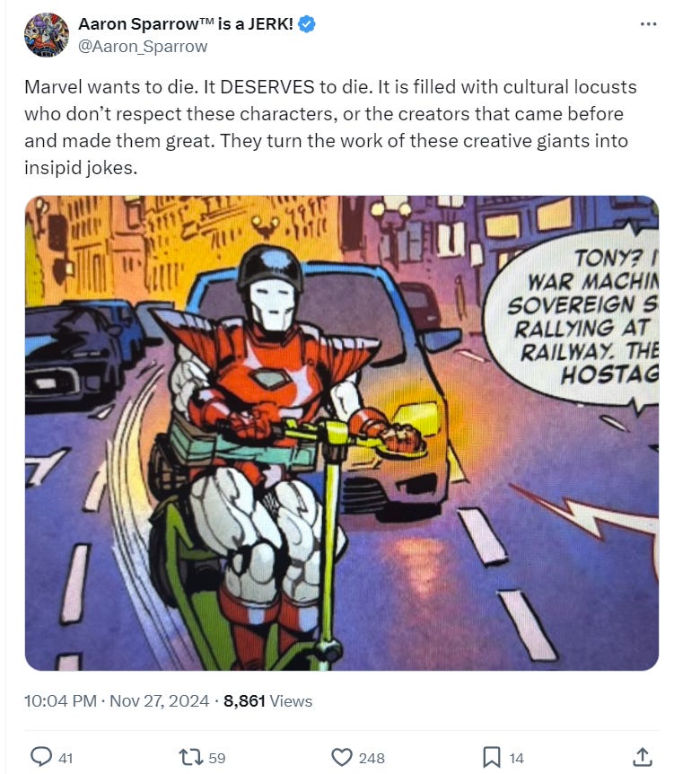 While the joke infuriated him, Sparrow also acknowledged that Marvel’s incompetence and malice towards the characters provides him an opportunity to capitalize.
