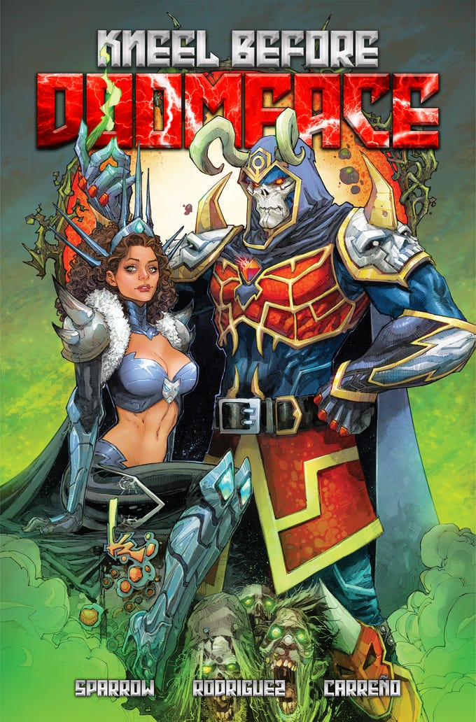 “Aided by Lexi Vega- a sharp-witted, sexy TV producer turned reluctant majordomo- Doomface must learn to navigate and conquer an unrecognizable world,” the description continues. “Together, they'll navigate the shifting landscape of modern villainy... him, determined to tear through a world that has forgotten him, and her, getting a crash-course in the often murky and always deadly supervillain politics... and learning how it compares and contrasts the shallow and vapid promises of Hollywood!”