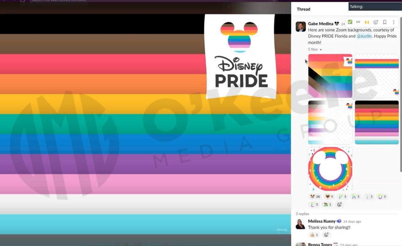 In Volume One of O’keefe’s Disney Files series, documents from Disney employees reveal the company's promotion of "LGBTQ and trans parades with fully naked men on bikes by Disney, pride nights on Disney's properties and out in communities across America, company Polly—yes, swingers—meet up groups, company workshops on how to change your name as you transition, and TV specials aimed at children like ‘Who I'm Meant to Be,’" according to O'Keefe. He further explains, "And yes, you guessed it, that show is all about letting young kids know that it's okay at any age to let the rainbow flag fly, and it looks as if it's sponsored and sanctioned by Disney." These revelations seem to corroborate Disney marketing director Amit Gurnani's exposure of the company's "unspoken" agenda to expose children to this content.