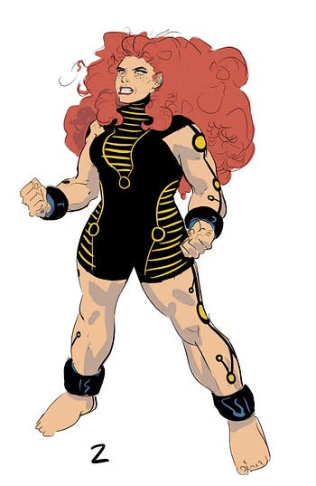 “DOCTOR POISON 2.0. She got her suit!” Thompson announced. “This was actually a funny design challenge because I don’t think Hayden or I really wanted to change her perfect first costume, but since I’d written into the narrative that she was demanding a new suit (and subsequently basically forced Cale’s hand into giving her one) — our hands were tied.”