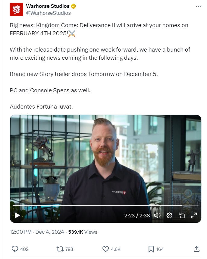 As for the reason why, Warhorse Studios spokesman Toby Stolz-Zwilling said, “Why you might ask? Well, simple, so you can start 2025 with the best game there is.”