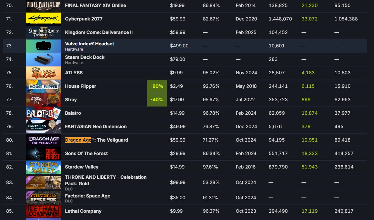 Veilguard is currently 80th on Steam’s Top Seller chart and it only has 94,195 followers. The game has been available to purchase since October 31st.