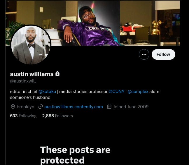 Austin Williams has since made his X account private, no doubt to scrub all his racist tweets before gamers can see them and expose him for hating white gamers.