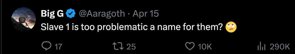 One fan mocked the announcement in the comments, “Slave 1 is too problematic a name for them?”