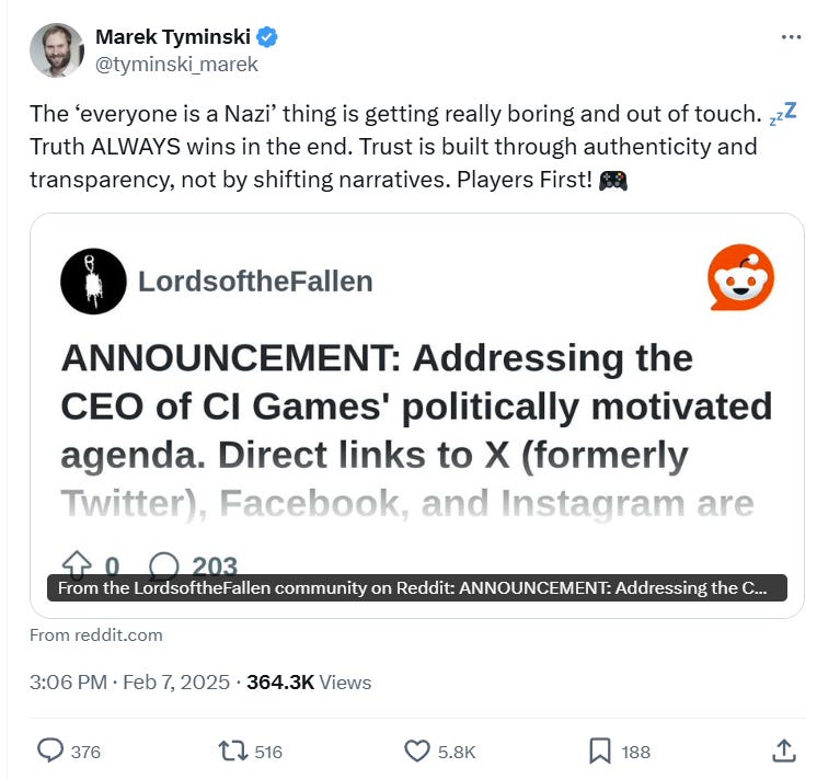On what kind of power trip do you have to be to think you have more of a say about Lords of the Fallen than the CEO and the employees? Absolute parasites. Reddit is going to redpill this dude for real.