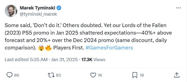 He wrote, “First 3 days of Steam promo: crushing our high-end forecast by 10%+! Huge thanks for the amazing support—it means everything. Enjoying the game? Drop a quick Steam review. Not feeling it? Share your thoughts too. Every word helps us improve!”