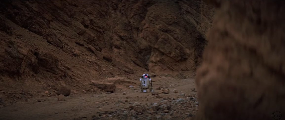 It did not stop there as R2-D2 is stalked in a canyon on Tatooine by the Jawas. There’s also a horror vibe when Luke retrieves R2-D2 after he has run into the desert to look for Obi-Wan Kenobi. Luke discovers there are Sand People in the area and attempts to locate them only to be ambushed by one of them. It would require Kenobi’s intervention to save him.