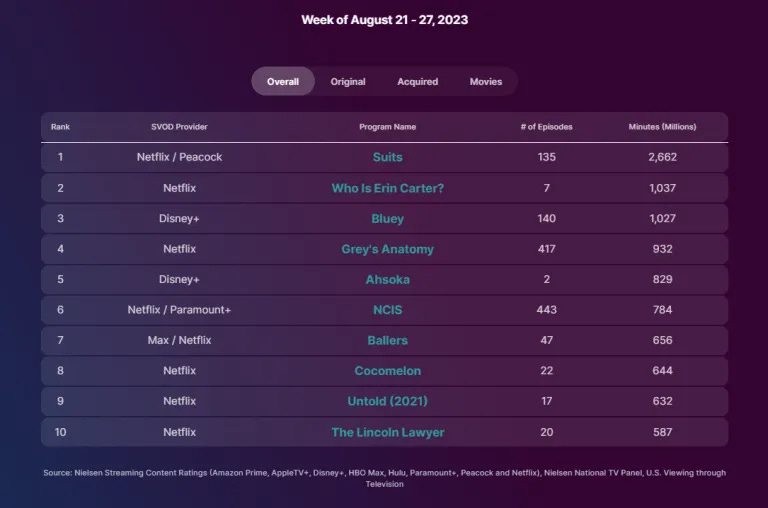 However, it posted even lower numbers than the previous week with just 288.9 million minutes watched.