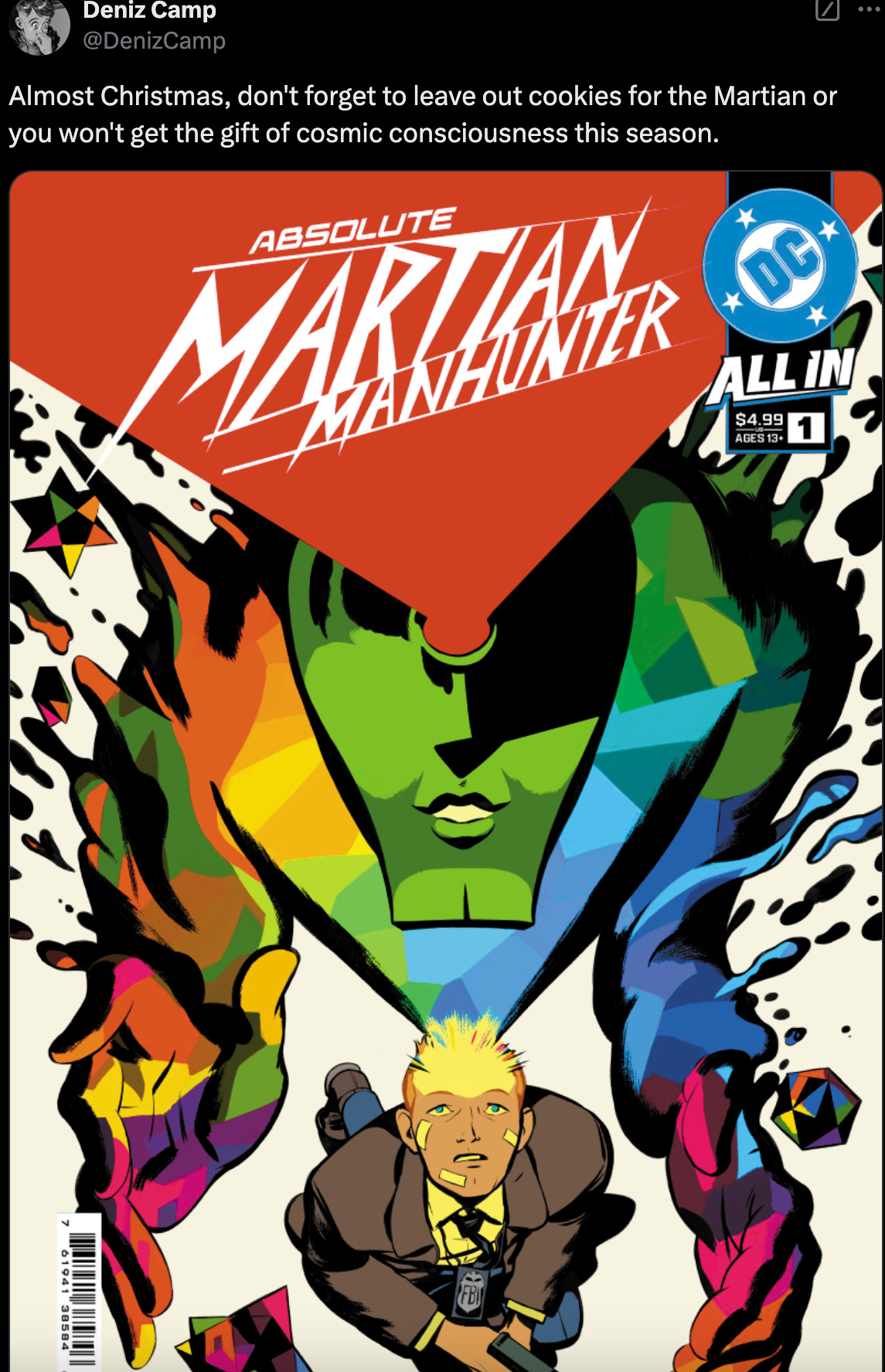 Deniz Camp works for both Marvel and DC Comics writing The Ultimates and Absolute Martian Manhunter, and he spent his Christmas mocking the Incarnation of Jesus Christ.