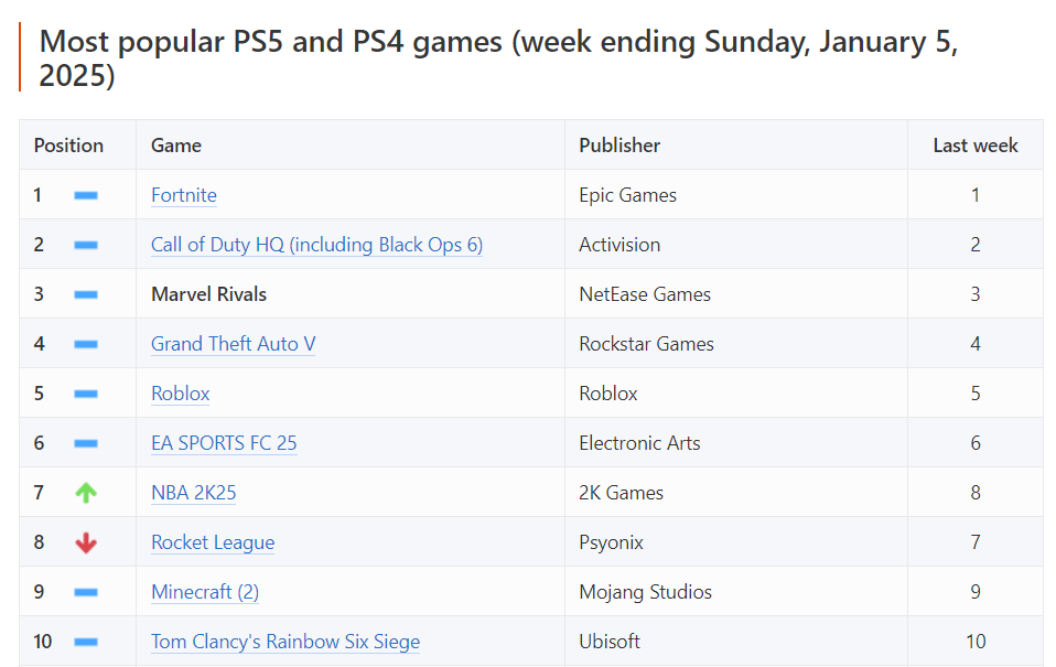 However, it moved back up to fourth in the most recent chart for the week ending January 5, 2025.