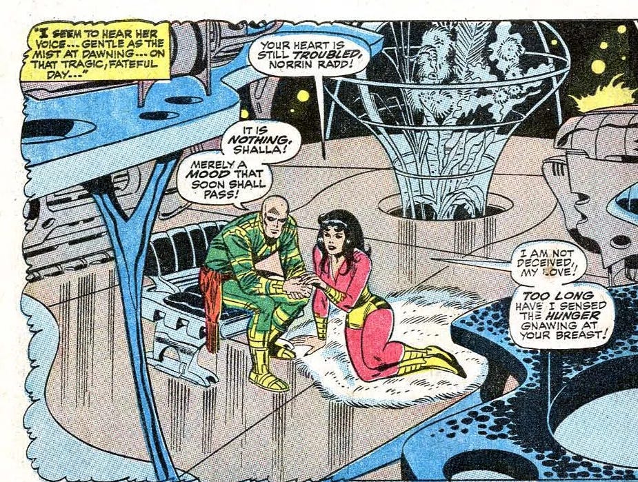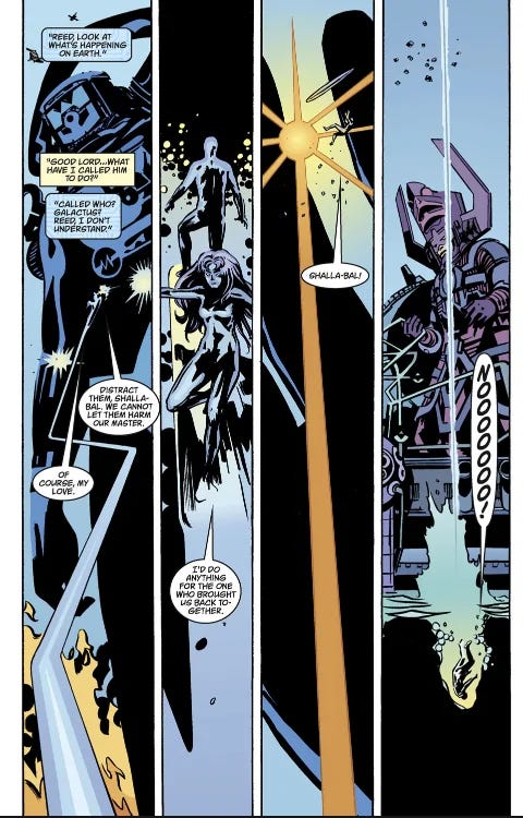 The character became the Silver Surfer in a throwaway multiverse comic series, Earth X, back in 1999 and 2000. In the final issue of the series it’s implied that Galactus imbued not only Norrin Radd with the Power Cosmic, but Shalla-Bal as well.