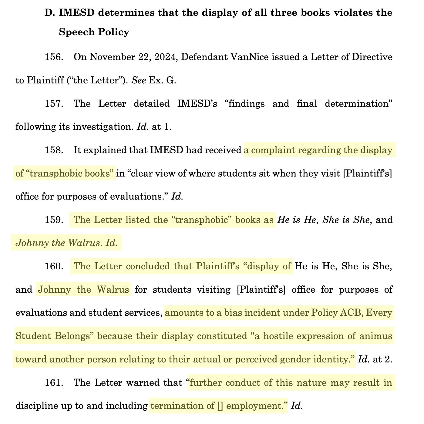 3/ While school staff plaster their offices and classrooms with political slogans, sexual content, and pro-trans messaging, Theis added a personal touch to his office desk: a copy of “Johnny the Walrus.” IMESD launched a full-blown “bias incident” investigation.