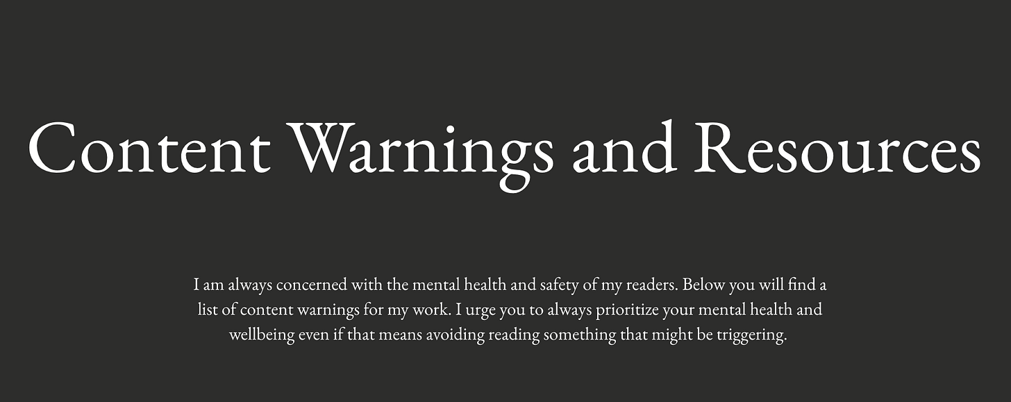 8/ Let’s not gloss over the seriousness of that list. @ADFLegaldidn’t just pull terms like “gore” out of nowhere. Author Kalynn Bayron, to her credit, admits and actively warns about this content in her books: