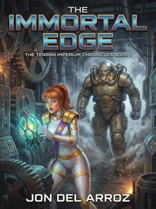 Dive into The Immortal Edge by Jon Del Arroz where Imperial Special Agent Ayla Rin uncovers a deadly conspiracy tied to a revolutionary immortality spore held by ruthless space pirates, forcing her into a high-stakes race across the stars to stop sinister forces from erasing humanity forever.