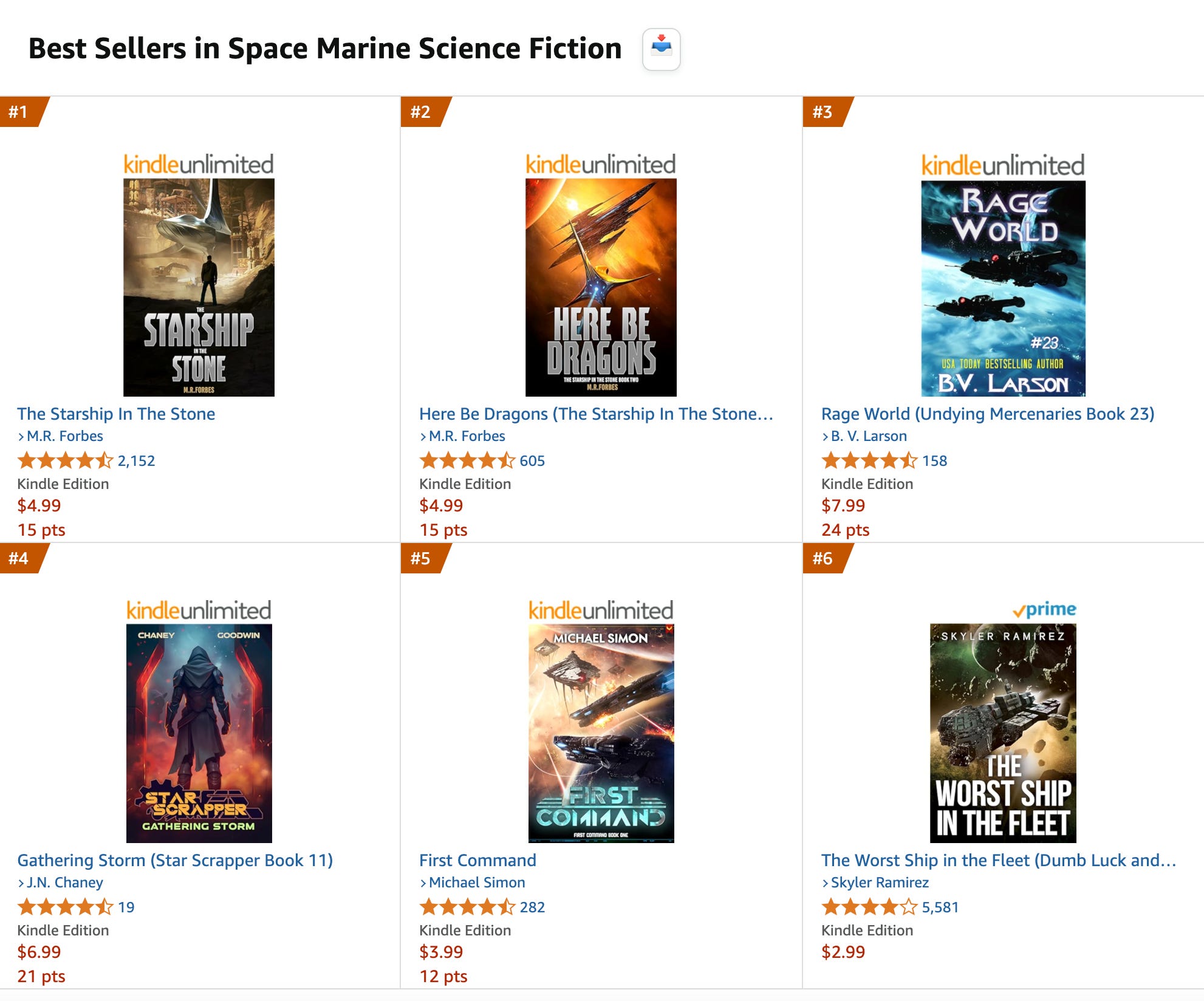 The top of the charts are often dominated by the likes of J.N. Chaney, M.R. Forbes, and B.V. Larson. Unlike the very public faces of mainstream publishing, these men operate much more behind the scenes, grinding out books as fast as they possibly can to keep the algorithm chain going. They even often do collaborations with other authors to ensure they keep having new releases to show up on those charts for the voracious Kindle Unlimited users.