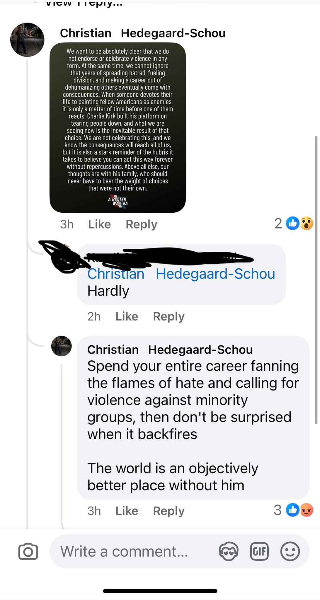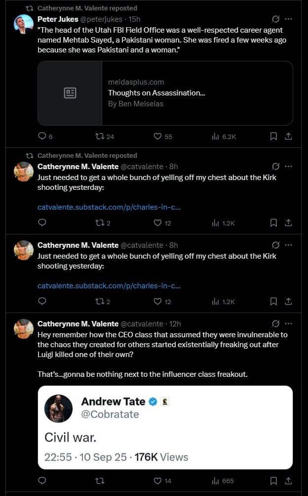 Numerous individuals have reported on social media alleged Microsoft employees celebrating Kirk’s death. One user shared posts from Blizzard employees Hazel Monforton, a Senior Writer and Narrative Designer, as well as World of Warcraft writer Catherynne M. Valente.