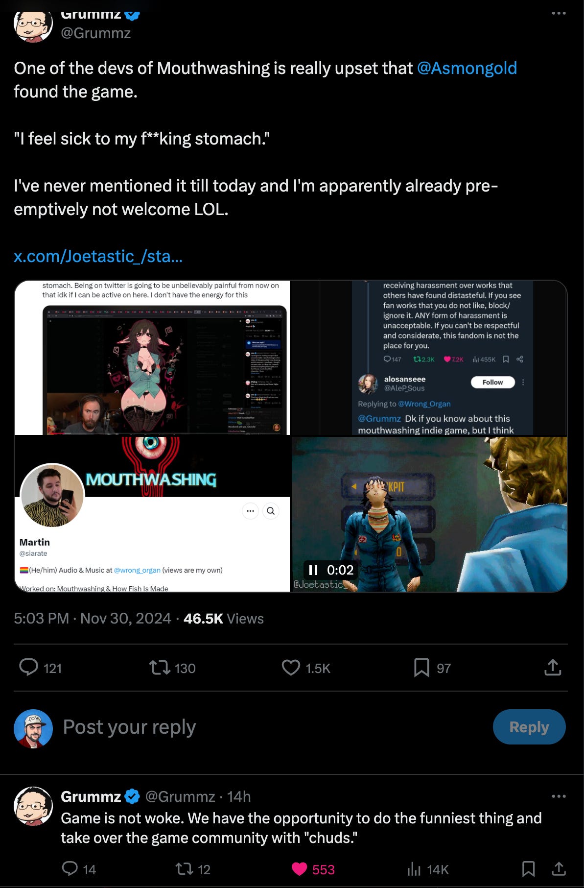 Mark Kern, the former lead developer of World of Warcraft, posted to his @grummz X account, “One of the devs of Mouthwashing is really upset that @Asmongold found the game. "I feel sick to my f**king stomach." I've never mentioned it till today and I'm apparently already pre-emptively not welcome LOL.”