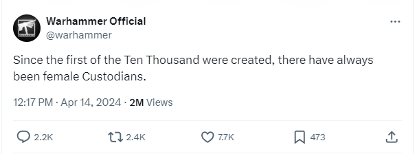 The official Warhammer account on X confirmed the authenticity of the excerpt and declared that female Custodes always existed. The account wrote, “Since the first of the Ten Thousand were created, there have always been female Custodians.”