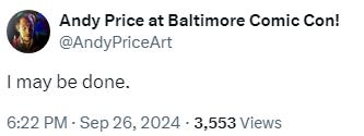 Andy Price subtweeted later about the situation, clearly annoyed that his work was attacked like this and made into a racial situation when it was about a cartoon Pony. “I may be done,” the artist said.