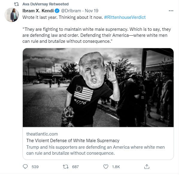 DuVernay also reposted a post from Ibram X. Kendi, who wrote, “They are fighting to maintain white male supremacy. Which is to say, they are defending law and order. Defending their America—where white men can rule and brutalize without consequence.'”