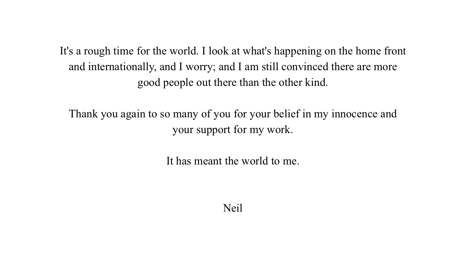 Now, Neil Gaiman has broken his social media silence posting this to X and other platforms: