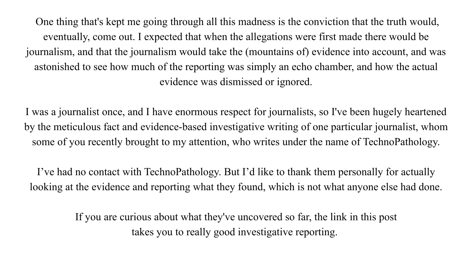What that has to do with Day’s ability to research material and present findings is unclear. It’s also unclear what it has to do with Neil Gaiman, but it’s the level of “scrutiny” this project places on what they call proving Gaiman’s innocence.