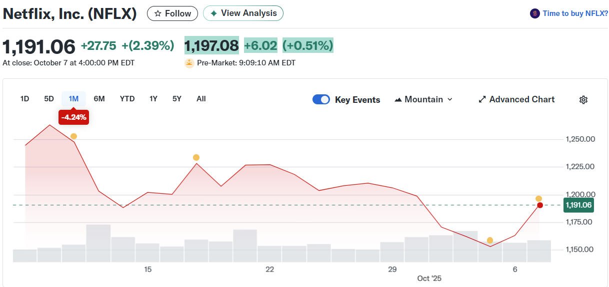 Following this call for boycott, Netflix’s stock plummeted to a low of $1,143.22 on October 3rd. On September 30th it had closed at $1,198.92. That’s a decline of nearly 5%.