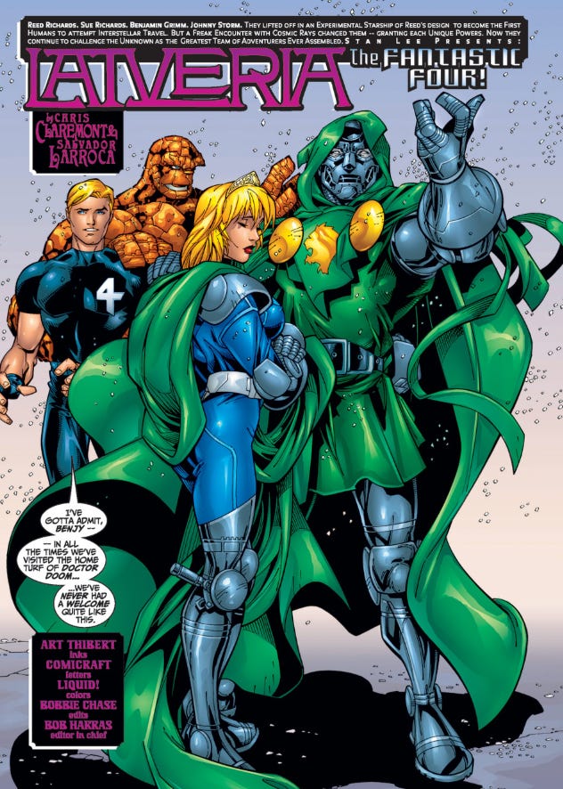 Additionally, while not necessarily a female Doctor Doom, Sue Storm was Baroness von Doom in Fantastic Four Vol. 3, which launched back in 1998.