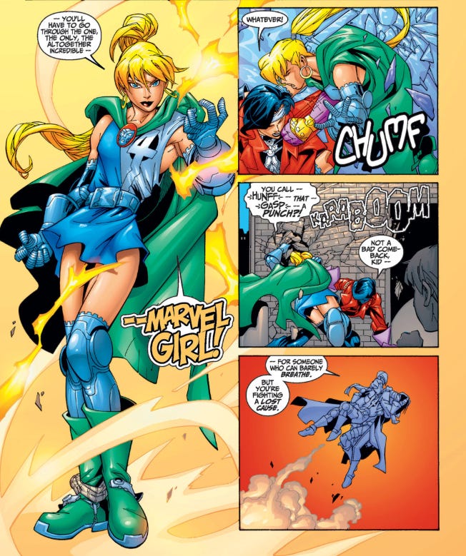 That run also featured Valeria as Valeria von Doom, who used the alias Marvel Girl.