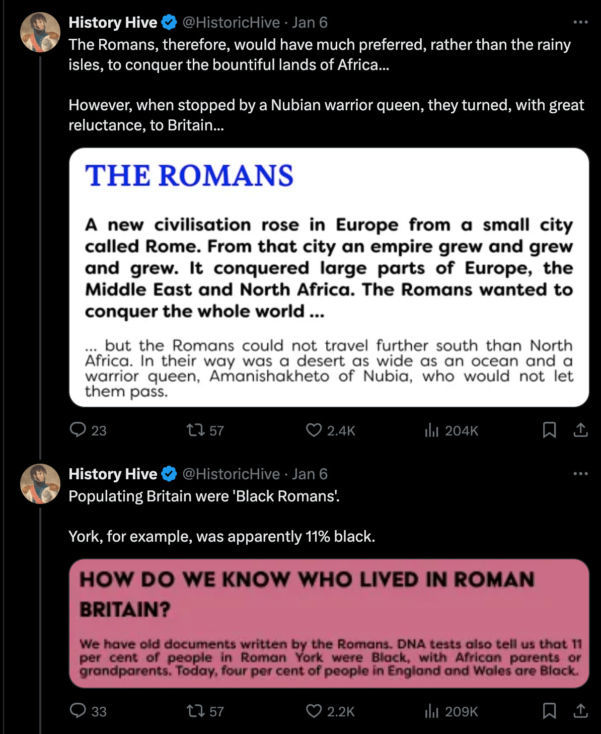 “Populating Britain were 'Black Romans'. York, for example, was apparently 11% black.”