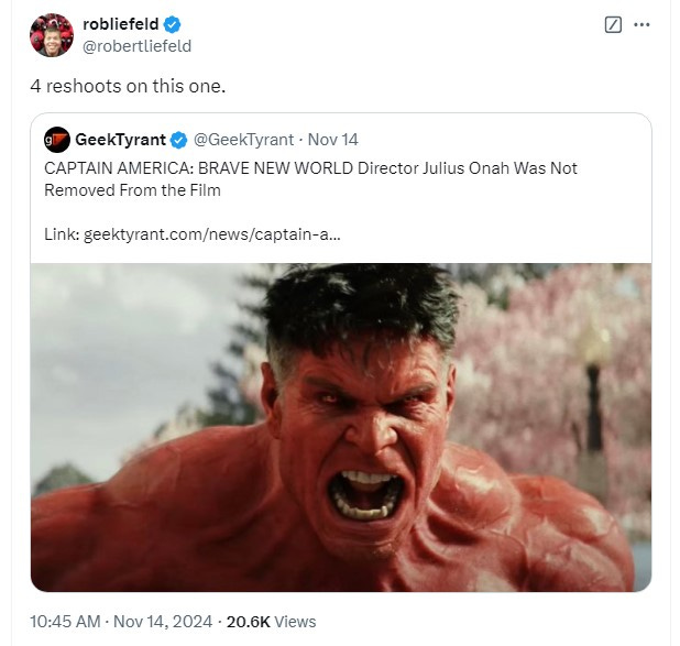 On top of all of this, actor Tim Blake Nelson confirmed that to The Hollywood Reporter in September 2024 that he didn’t just participate in reshoots, but he reshot the entire film.
