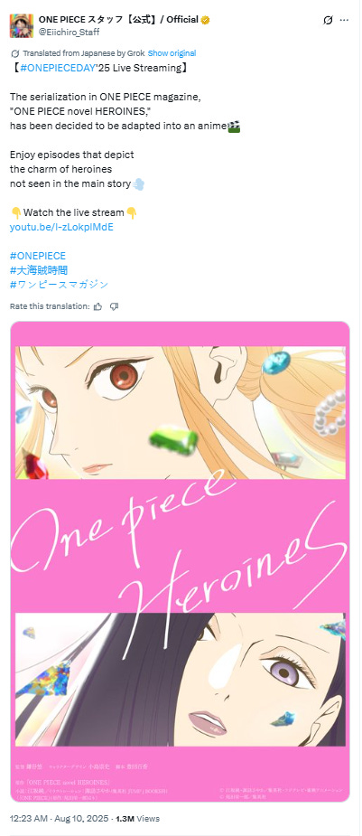As part of the the One Piece Day ‘25 event, an anime adaptation of One Piece Heroines was announced.