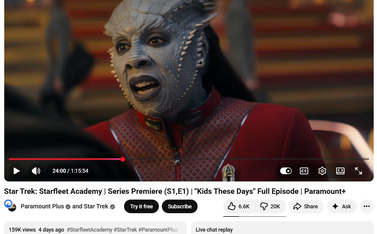 Paramount made private the first episode of Star Trek: Starfleet Academy it had available for free on YouTube.