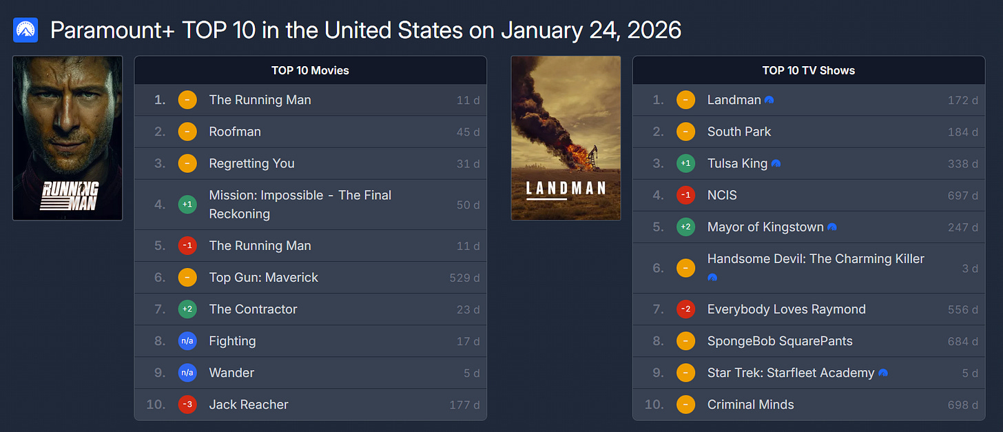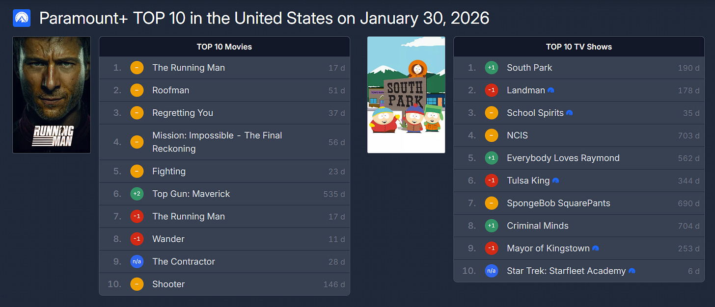 While it’s impossible to determine this, all indications is that the show is performing poorly on Paramount+. First, the show has fallen to the bottom of the top 10 most viewed shows on Paramount+. It briefly made the top 10 list following the release of the third episode on January 22nd. FlixPatrol reports it was 9th in the United States on the 24th.