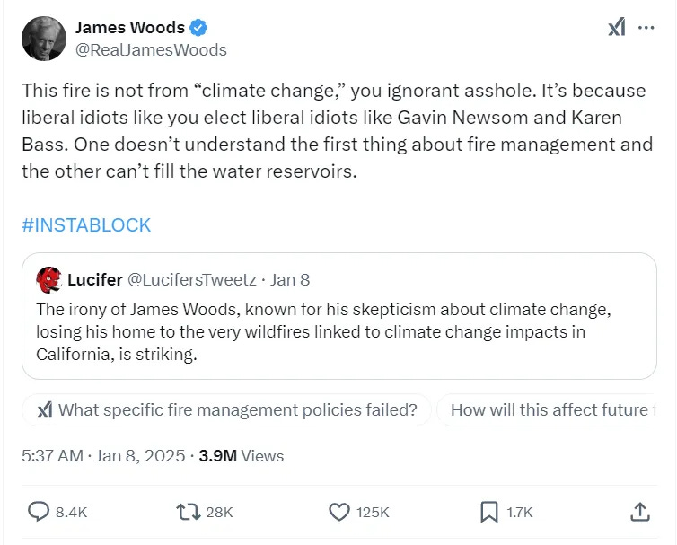 Heaton is not the only celebrity to put Bass and Newsom on blast. James Woods posted to X, “This fire is not from ‘climate change,’ you ignorant asshole. It’s because liberal idiots like you elect liberal idiots like Gavin Newsom and Karen Bass. One doesn’t understand the first thing about fire management and the other can’t fill the water reservoirs.”