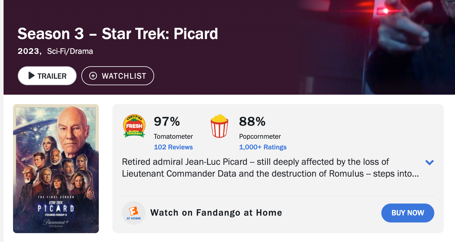 The audience reception data tells the real story. Season 1 of Picard earned a lackluster 52% audience score on Rotten Tomatoes, while season 2 plummeted to an abysmal 30%. Season 3, which jettisoned these characters in favor of The Next Generation cast, soared to an 88% audience score – a dramatic vindication of the decision Matalas now regrets.
