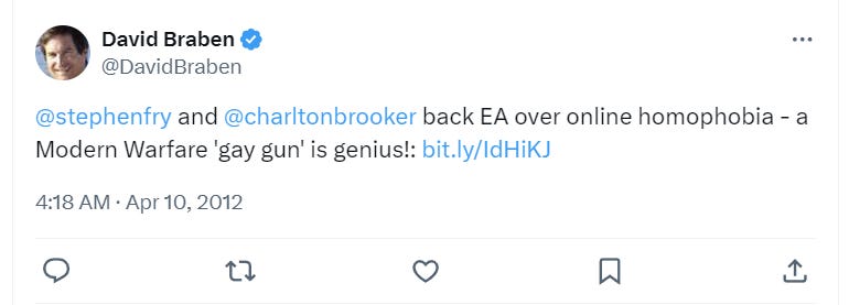 Back in 2012, he supported the idea of creating a “gay gun” in Modern Warfare to own the “homophobes.”