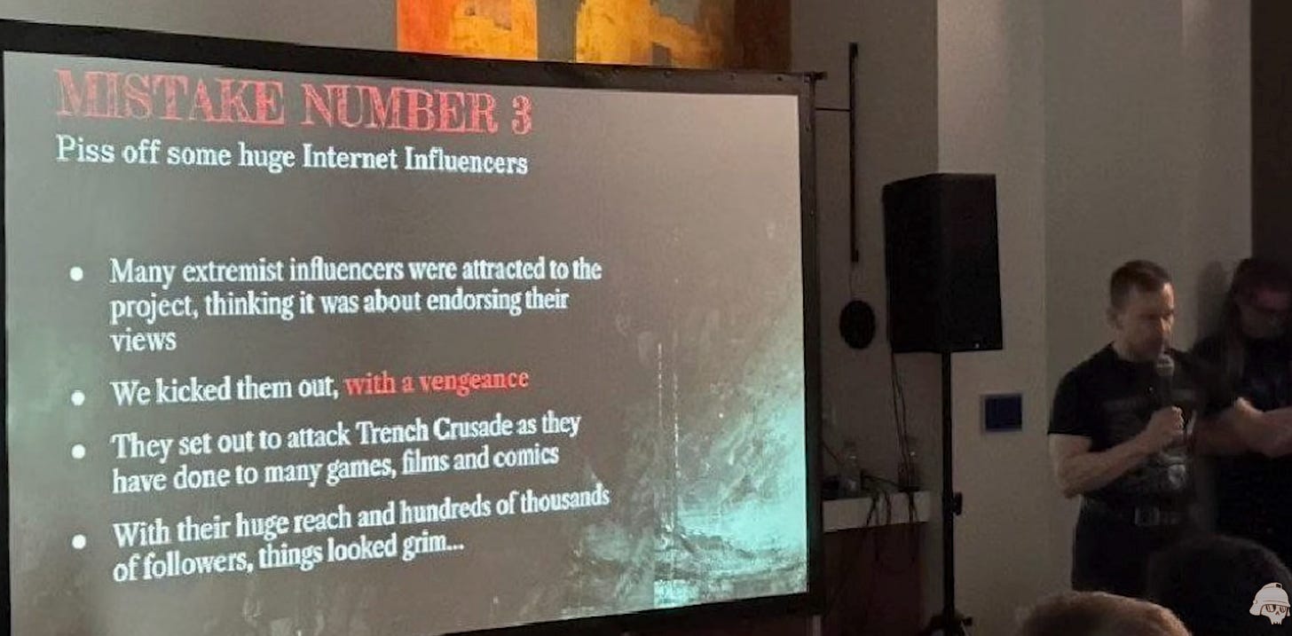 “As most of you will know, there was some political drama about Trench Crusade. But this video is not about that, and I really couldn’t care less,” he stated upfront, though it’s worth noting the developers did signal that right-wingers and traditionalist Christians aren’t welcome in their community - a bizarre stance for a game steeped in Christian medieval imagery. That decision alienated a portion of their potential audience before the product even shipped.