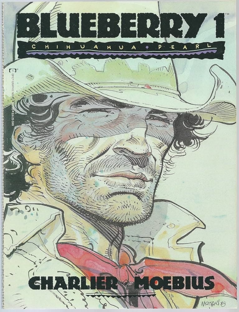 "Blueberry" by Charlier and Moebius is a legendary Western graphic series. Follow the adventures of Mike Blueberry, a complex and heroic drifter, as he navigates the American frontier. Filled with gritty realism, political intrigue, and stunning art, it's a timeless tale of the Old West with a touch of antihero complexity.