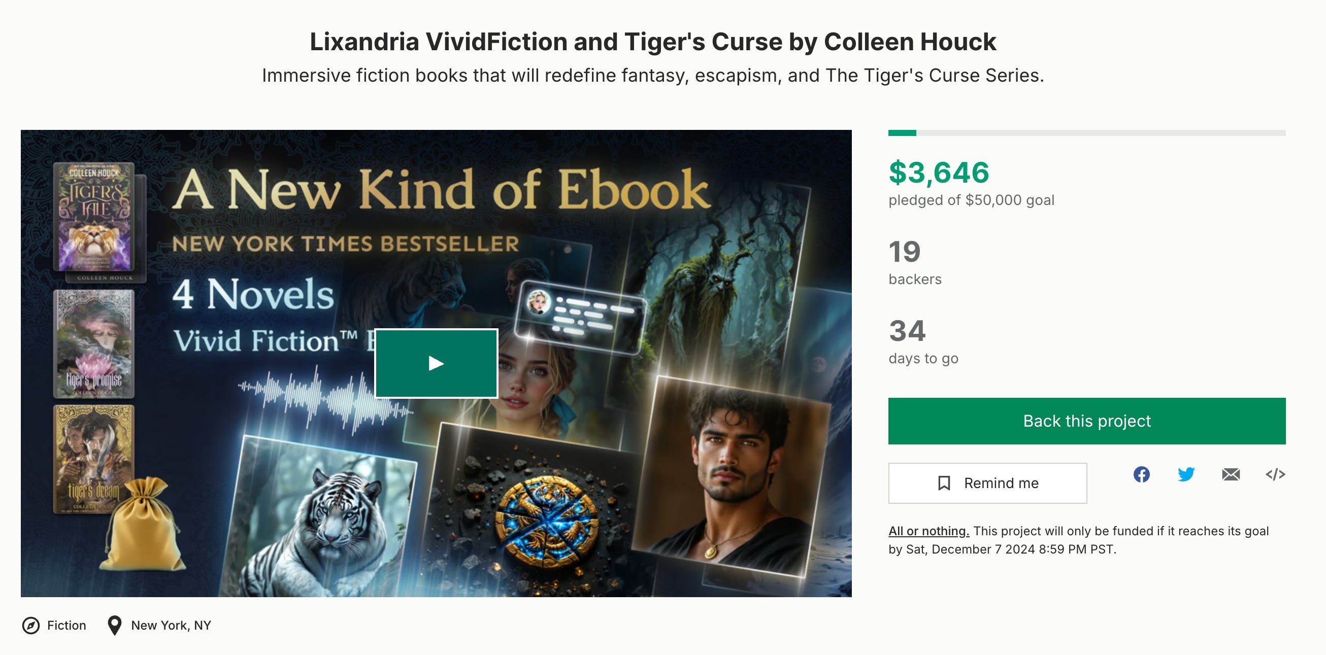 Despite Colleen Houck's huge fanbase, the Kickstarter has only garnered nineteen backers as of this writing despite being open for several days. It has a goal of $50,000, with only $3,646 raised so far. The high dollar amount comes from two backers who purchased a reward to stay at Colleen Houck’s home for two nights rather than the product itself.