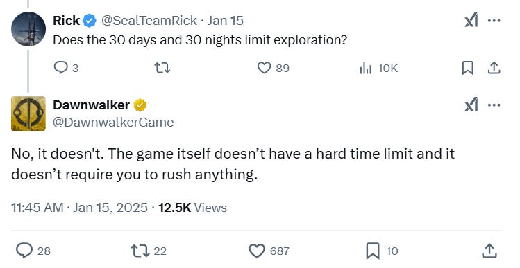 They also responded to another user who questioned, “Does the 30 days and 30 nights limit exploration?”